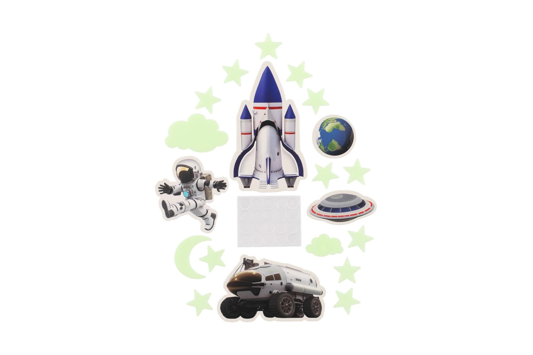 Weltraumfiguren: Astronauten, Raketen und Planeten
