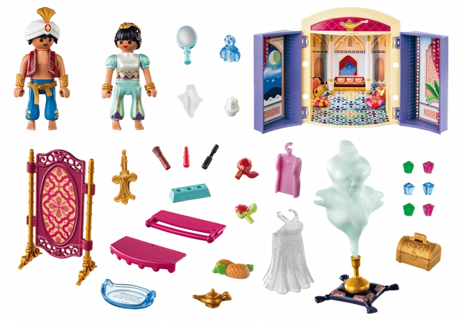 - Zubehör: Wunderlampe, Schatztruhe und Palastdekoration