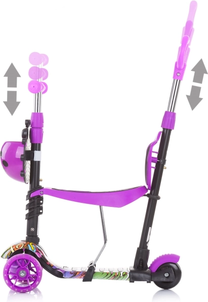 Der CHIPOLINO Kiddy Evo 3-in-1 wächst mit Ihrem Kind – von den ersten Fahrversuchen mit Hilfe der Eltern bis zur selbstständigen Fahrt. Die Dreirad-Konstruktion mit breiter, rutschfester Trittfläche und hinterer Trittbremse sorgt für Sicherheit und Kontrolle. Die Vorderräder mit bunten LEDs leuchten während der Fahrt und machen jeden Ausflug noch schöner.
