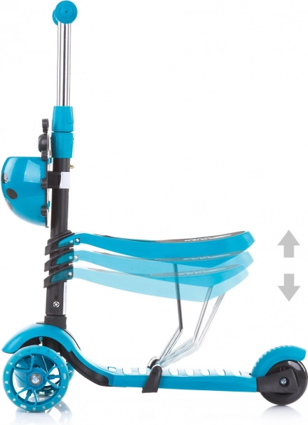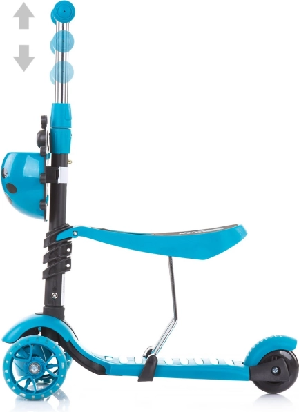 Der 3-in-1-Kinderroller CHIPOLINO KIDDY EVO bietet drei Nutzungsarten, die mit Ihrem Kind mitwachsen – mit elterlicher Führung, als Laufrad mit Sitz sowie als klassischer Tretroller. Dank der drei Räder ist er sehr stabil und verfügt über höhenverstellbaren Lenker und Sitz, rutschfeste Griffe und Trittfläche, LED-Leuchten in den Vorderrädern und eine hintere Trittbremse. Ein Frontkorb für Kleinigkeiten ist ebenfalls dabei.