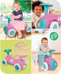 Das Kinder-Rutschauto BABY CLEMENTONI „Mein erstes Auto“ bringt Bewegungsfreude und trainiert das Gleichgewicht. Vier stabile Räder, eine niedrige Einstiegshöhe und ein ergonomisch geformter Sitz geben Sicherheit bei den ersten Fahrten im Haus und im Garten. Beim Drehen des Lenkrads schwenken die Vorderräder sanft mit, sodass der kleine Fahrer die Richtung leicht lernt – und eine Hupe sorgt für zusätzlichen Spaß.