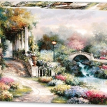 Genießen Sie die ruhige Atmosphäre mit dem Bild einer romantischen Gartenecke auf einem hochwertigen Puzzle mit 1000 Teilen. Perfekt für Entspannung, Konzentrationstraining und als stilvolle Dekoration nach dem Zusammenkleben.