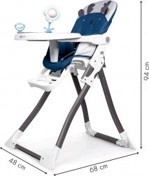 Der Hochstuhl im modernen Design ist für Kinder von 6 bis 36 Monaten geeignet. Der Sitz ist ergonomisch geformt und gewährleistet die richtige Haltung des Kindes. Der Sitzbezug kann bei Bedarf leicht abgenommen und bei 30 Grad gewaschen werden. Vorteile: - Einfaches Klappsystem - 3-Punkt-Sicherheitsgurte - Abnehmbares doppellagiges Tablett - Verstellbare Fußstütze - Rutschschutz für das Kind - Stabile Konstruktion - Maximale Tragfähigkeit 15 kg Die Maße des zusammengeklappten Stuhls betragen 94 x 68 x 48 cm.