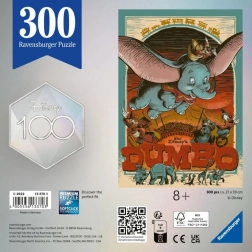 Treten Sie ein in die Welt der Magie mit der Jubiläumsedition DISNEY 100 Jahre und dem beliebten Elefantenbaby Dumbo. Das Puzzle von Ravensburger besticht durch präzise Verarbeitung, exakten Stanzschnitt und robuste Teile, die natürlich ineinandergreifen. Dank der 300 Teile ist das Puzzeln flüssig und macht Kindern wie Erwachsenen Spaß.