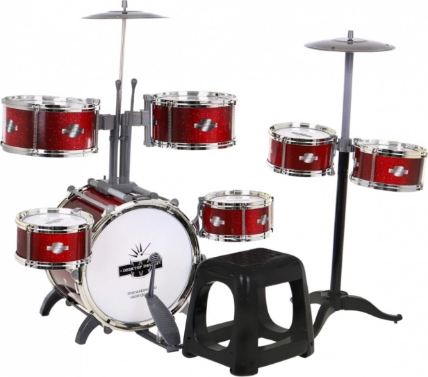 Rotes Schlagzeug mit 7 Trommeln + Hocker + 2 Becken + 2 Sticks – 12 Teile