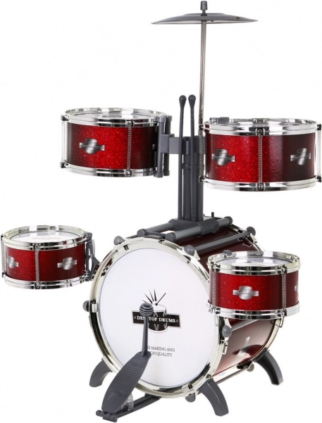 Das große zweiteilige Schlagzeug-Set ist ein Musikalisches Spielzeug für Kinder ab fünf Jahren. Das Set besteht aus 6 Trommeln, 2 Becken, 2 Sticks und einem bequemen Hocker. Das Spielen auf dem Schlagzeug lehrt das Kind Fokus und Konzentration. Es baut Stress ab, verbessert die Stimmung und trainiert die Koordination von Händen und Füßen.