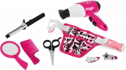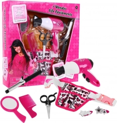- Gürtel mit Werkzeugtaschen, Spiegel, Kamm, Schere, Haarglätter, 2 Haarspangen, Föhn