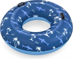 Der aufblasbare BESTWAY-Schwimmreifen mit tropischem Hai- und Palmenmotiv ist ideal für den Pool oder ruhige Seeflächen. Der große Durchmesser von 119 cm bietet bequemen Halt, während zwei integrierte Griffe das Aufsteigen und Festhalten auch beim Toben erleichtern.