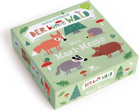 Großes Memo-Spiel mit Waldmotiven von Magellan für Kinder ab 3 Jahren. Enthält 16 stabile Karten in 12 × 12 cm und fördert Gedächtnis, Wahrnehmung und logisches Denken. Dank der zarten Pastellfarben und der einfachen Regeln ideal für das erste Familienspiel.