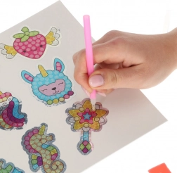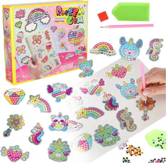 Komplettset für die Diamantmalerei von Aufklebern – ideal zum Verzieren von Tagebüchern, Heften und Geschenkanhängern. Einfache Vorgehensweise und ein sicheres Ergebnis erfreuen Anfänger und kleine Kreative.