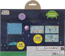 Kreativ-Set Fensteraufkleber mit Hunderten von Aufklebern und zwei Szenarien ermöglicht es Ihnen, Ihr eigenes einzigartiges Bild zu erstellen. Die Aufkleber können leicht umplatziert und auf verschiedenen Oberflächen, einschließlich Fenstern, angebracht werden.