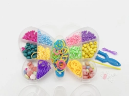 Gestalten Sie originelle Armbänder, Anhänger und Dekorationen mit dem Loom-Band-Set. Das Herz des Sets ist eine praktische Box in Blumenform, die die Komponenten übersichtlich ordnet. Dank der vielfältigen Palette an Gummibändern und Perlen kombinieren Sie Farben und Stile mühelos – ob für sich selbst oder als Geschenk.