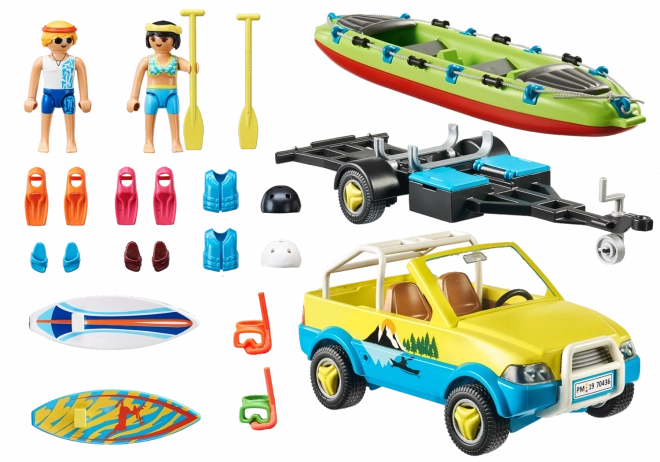Das Set PLAYMOBIL FAMILY FUN Strandauto mit Bootsanhänger bringt eine bunte Welt sommerlicher Aktivitäten – von Wellen für Surfer bis hin zum entspannten Paddeln im Kanu. Das robuste Auto mit Boardhaltern und Bootsanhänger bietet viele Spielszenarien und meistert mühelos jeden Ausflug ans Wasser.