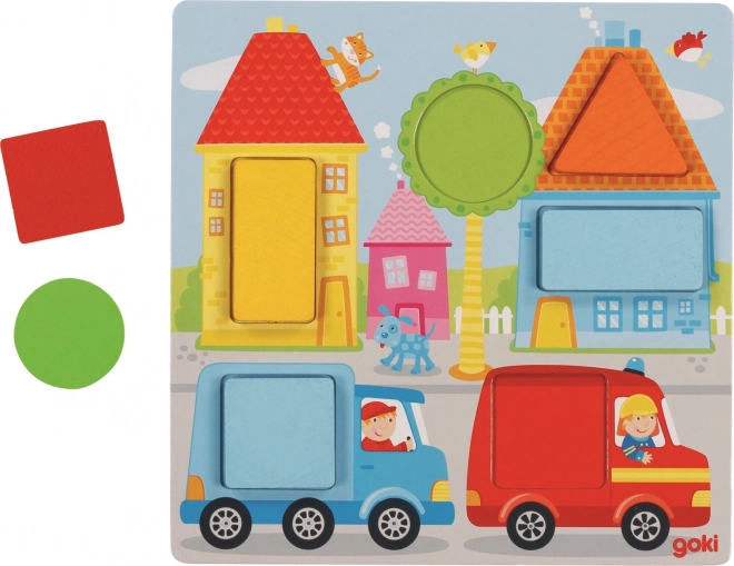 Entdecken Sie neue Lern- und Unterhaltungsmöglichkeiten für Ihre Kinder mit dem Goki Einlege-Spiel! Holzgeometrische Formen und Blöcke bieten Stunden voller Spaß und Entwicklung der motorischen Fähigkeiten.