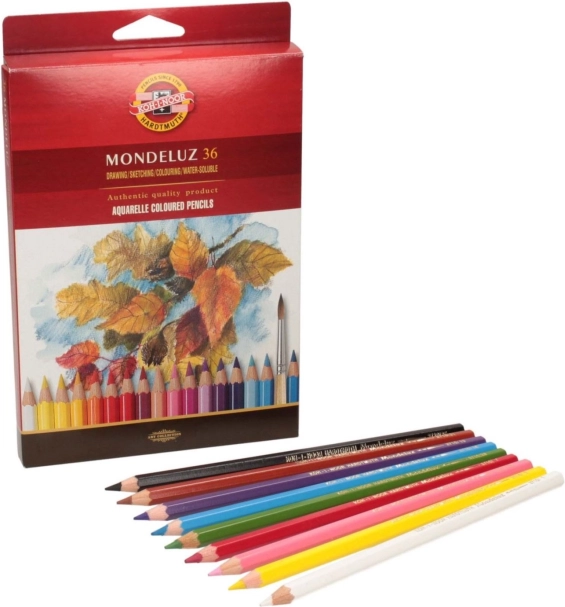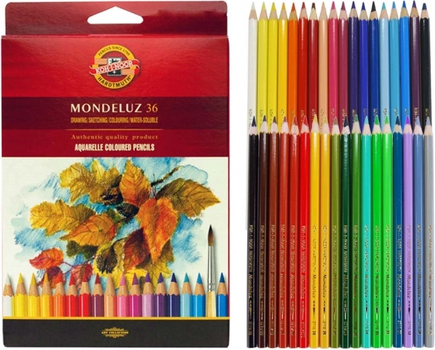 Das Set der Aquarellfarbstifte KOH-I-NOOR MONDELUZ mit 36 Stück ist ideal für detailreiche Zeichnungen und Malen mit Wasser. Die Pigmente zeichnen sich durch ausgezeichnete Lichtechtheit und Farbreinheit aus, sodass Ihre Werke lange klar und ausdrucksstark bleiben. Beim Kontakt mit Pinsel und Wasser verläuft der Strich wunderschön und ermöglicht Effekte, die für Aquarell typisch sind.