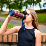 Die praktische Schlaufe erleichtert das Tragen und die gut ablesbare Skala am Flaschenkörper hilft, die Trinkmenge über den Tag im Blick zu behalten. Durch die Wiederverwendung der Flasche reduzieren Sie zugleich den Verbrauch von Einwegplastik und schützen die Umwelt.