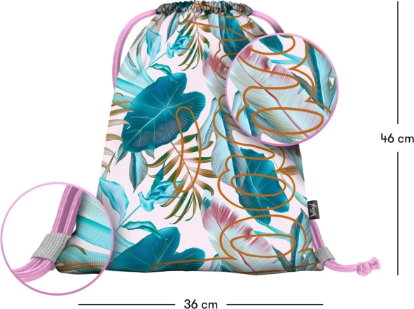 Entdecken Sie einen praktischen und stilvollen Beutel mit farbenfrohem Design tropischer Blätter – ideal für Turnschuhe und andere kleine Gegenstände. Dieser Beutel besteht aus strapazierfähigem, hochwertigem Textilmaterial, das leicht abwischbar ist und so eine lange Nutzungsdauer garantiert.