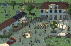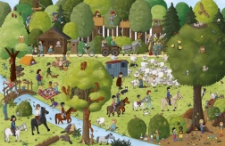 Auf jeder Doppelseite Figuren und Tiere suchen und ihren kleinen Geschichten folgen – vom geschäftigen Tag bis zum abendlichen Fest. Trainiert Aufmerksamkeit und Gedächtnis auf spielerische Weise.