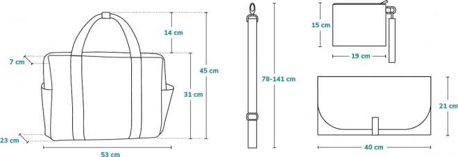 - Wickelunterlage, Kosmetiktasche mit Reißverschluss, Befestigungsriemen für den Kinderwagen, Schultergurt