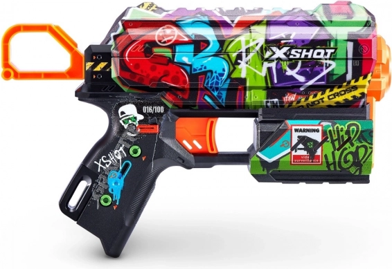 Erlebe maximalen Spaß mit der X-Shot Skins Flux, die Stil, Leistung und Präzision vereint. Der moderne SKINS-Print verleiht deiner Ausrüstung einen einzigartigen Look, während die optimierte Konstruktion für schnelles Zielen und flüssiges Nachladen sorgt. Ideal für Gefechte zu Hause und Action im Freien.