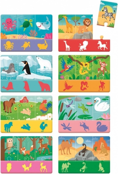 Das Rätsel „Tiere und ihre Schatten“ ist ein Spielzeug, das entwickelt wurde, um Kindern die Welt der Tiere näherzubringen. Die mitgelieferten Materialien ermöglichen ihnen, die Welt durch das Betrachten von Bildern und taktiles Erkunden kennenzulernen. Darüber hinaus erlauben sie dem Kind, auf natürliche Weise logisches Denken zu entwickeln und Konzentration, Gedächtnis und Aufmerksamkeit zu üben.