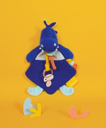 Plüsch-Dinosaurier Doudou ist die perfekte Kombination aus Spielzeug und Schnullerhalter für Ihr Baby. Er bietet Weichheit und Komfort und hält gleichzeitig den Schnuller in der Nähe des Babys.
