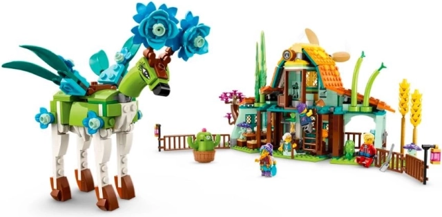 Das Highlight des Sets ist ein großer mystischer Hirsch mit voll beweglichem Kopf und beweglichen Beinen, der auf zwei Arten umgebaut werden kann: als fliegender Pegasus oder als Waldwächter. Eindrucksvolle Details wie gegen Blumen austauschbare Geweihe fördern das fantasievolle Spiel. Eine umfangreiche Auswahl an Minifiguren – Izzie, Zoey, Cooper und Mrs. Castillo – wird durch die Figuren Z-Blob und zwei Traumlinge ergänzt.
