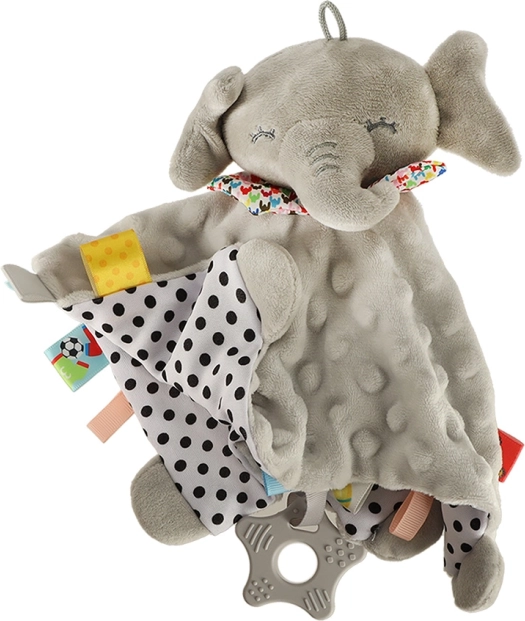 Sensorisches Spielzeug Rasselnder Elefant mit bunten Etiketten