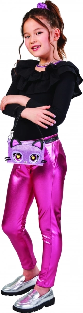 Bringe jedes Outfit mit der interaktiven Tasche PURSE PETS Purdy Purrfect zum Strahlen. Beim Drücken des Näschens wechseln ihre leuchtenden Augen in die Farben des Regenbogens, sodass du sie mühelos an Stimmung und Outfit anpassen kannst. Glitzernder lila Stoff, Katzenöhrchen und ein Reißverschluss vereinen Stil und Praktikabilität für Kinder.