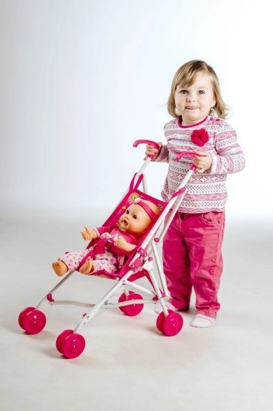 Für die Sicherheit der Puppe ist der Wagen mit Sicherheitsgurten ausgestattet. Dank des geringen Gewichts und der kompakten Maße 27 × 55 × 52 cm lässt er sich von Kindern leicht manövrieren. Das Spiel mit dem Wagen fördert die Fantasie, soziale Fähigkeiten und die Feinmotorik.