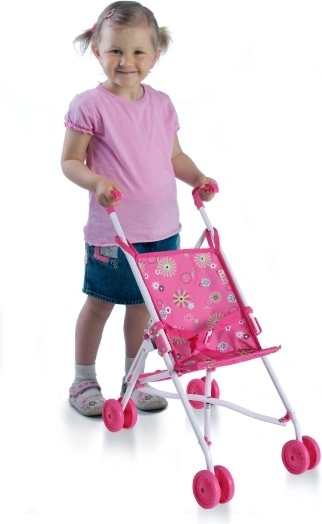 Dieser stylische Puppenwagen im „Buggy“-Design bietet einen stabilen Metallrahmen in Kombination mit leichten Kunststoffelementen. Er ist leicht klappbar, wodurch er sich problemlos transportieren, verstauen und auf Reisen mitnehmen lässt. Der Sitz mit Blumenprint verleiht dem Spiel Pfiff und inspiriert zu langen Spaziergängen mit der Lieblingspuppe.