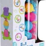 Neben der Unterstützung motorischer Fähigkeiten wie Genauigkeit der Bewegungen der Hände, Gründlichkeit des Greifens mit den Fingern und Drehbewegungen des Handgelenks, trainiert es auch die visuelle-motorische Koordination, Kreativität und räumliche Vorstellungskraft des Kindes. Lalaboom Kugeln wachsen mit dem Kind, was seine Entwicklung auf mehreren Ebenen unterstützt. Die Produkte sind sicher für das Waschen in der Spülmaschine bis 60°C.