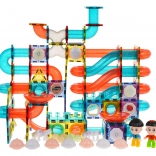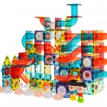 Entdecken Sie die Welt des Spielspaßes mit diesem farbenfrohen magnetischen Bauset für Kinder ab 3 Jahren. Das Set enthält 292 Teile, mit denen sich eine Murmelbahn in beliebiger Anordnung bauen lässt. Einige Elemente sind batteriebetrieben und beleuchten die Bahn nach dem Einschalten mit pulsierenden Lichtern, was das Spiel noch spannender macht.