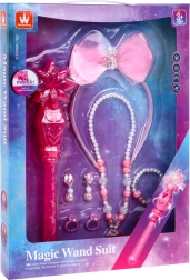 Interaktives Set für kleine Prinzessinnen - Feen bietet Kindern ab 3 Jahren ein magisches Erlebnis mit einem Zauberstab mit Ton- und Lichteffekten, zusammen mit einem stylischen Stirnband mit schöner Schleife, einer Halskette, einem Armband, Ohrringen und Ringen.