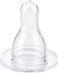 Universeller Silikonsauger in Kirschform für Standard-Babyflaschen. Bietet natürliches Saugen, gleichmäßigen Durchfluss ohne Verkleben, ist geschmacks- und geruchsneutral und leicht zu reinigen. Im Set 2 Stück.