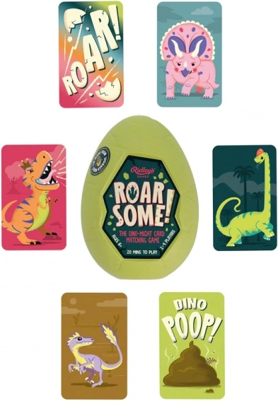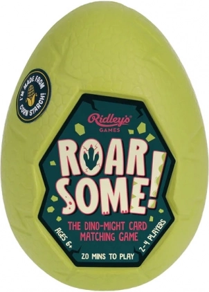 Kartenspiel Roar Some! von Ridley's Games ist die ideale Unterhaltung für Dinosaurierliebhaber ab 6 Jahren. In einer praktischen und umweltfreundlichen Verpackung, die einem Dinosaurierei ähnelt, finden die Spieler 60 beidseitige Karten und ein fesselndes Erlebnis beim Suchen nach passenden Paaren.