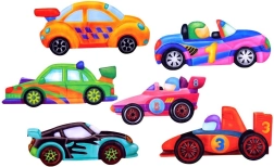 Gestalten Sie sechs verschiedene Rennwagen, jeder einzigartig nach Ihrer Fantasie und Ihrem Farbstil.