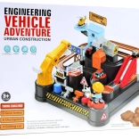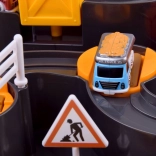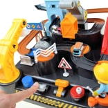 Im Lieferumfang enthalten sind drei Baufahrzeuge (Kipper, Betonmischer, Tankwagen), ein Hubschrauber und eine Bauarbeiterfigur. Die Bahn besteht aus robustem Kunststoff und ist nach einfacher Montage bereit für viele Stunden Spielspaß. Ideal als Geschenk für kleine Fans von Baumaschinen.