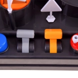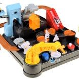 Diese farbenfrohe mechanische Bahn mit Baustellenthema bietet eine komplette Bauszene mit Hindernissen, Aufzug und einem Magnetkran. Kinder führen die Fahrzeuge vom Beladen bis zum Entladen, bedienen Drehscheiben und Hebel und verfolgen, wie die Autos der Strecke folgen. Die integrierte digitale Uhr am Turm ermöglicht Zeitmessung und spielt nach dem Einschalten eine fröhliche Melodie.