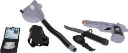 Das Set enthält eine Maske mit Atemschlauch, eine Spielzeugpistole, ein Messer und weitere realistische Zubehörteile für abenteuerliche Spiele.