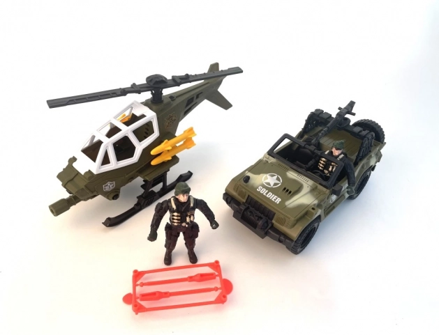 Militär-Set mit Fahrzeug und Hubschrauber bietet Spaß für alle kleinen Armeeenthusiasten. Es enthält ein Fahrzeug, einen Hubschrauber, zwei Soldaten und zahlreiche Accessoires für stundenlanges kreatives Spiel.