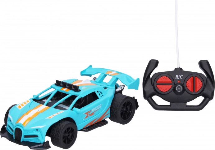 Genießen Sie rasante Fahrten mit dem stylischen RC-Auto in den Maßen 22,5 × 11 × 6,5 cm. Es bietet Lichteffekte, stabiles Handling auf 40 MHz und zwei Farbvarianten – Rot oder Blau. Stromversorgung: 3× AA für das Auto und 2× AA für die Fernsteuerung (Batterien nicht enthalten).