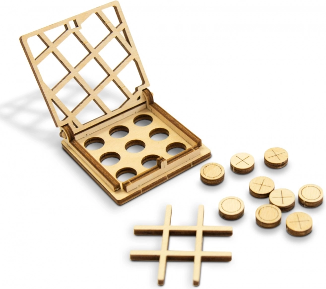 Der Aufbau gelingt ohne Kleber und Werkzeug, die Teile rasten präzise ineinander. Enthalten ist eine praktische Schachtel, damit kein Kreuz und kein Kreis verloren geht. Du kannst das Spiel in der natürlichen Ausführung belassen oder mit Stiften bzw. Farben ganz nach deinem Stil bemalen.