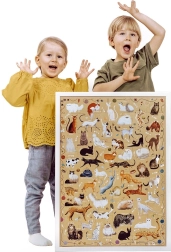 Miau, miau! Lustige und geheimnisvolle Katzen laden Kinder zum Spielen mit den großen 60-teiligen Puzzles ein, die Katzen verschiedener Rassen zeigen. Trainieren Sie Geduld und Aufmerksamkeit mit dieser tollen Motivation für spaßige Aktivitäten. CzuCzu weiß, wie ansteckend die Freude am Puzzeln ist!