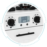 Die Küche ist mit drehbaren Knöpfen ausgestattet, um die Temperaturregelung und die Einstellung der Brenner zu simulieren, was ein kreatives und sicheres Spielen ermöglicht.