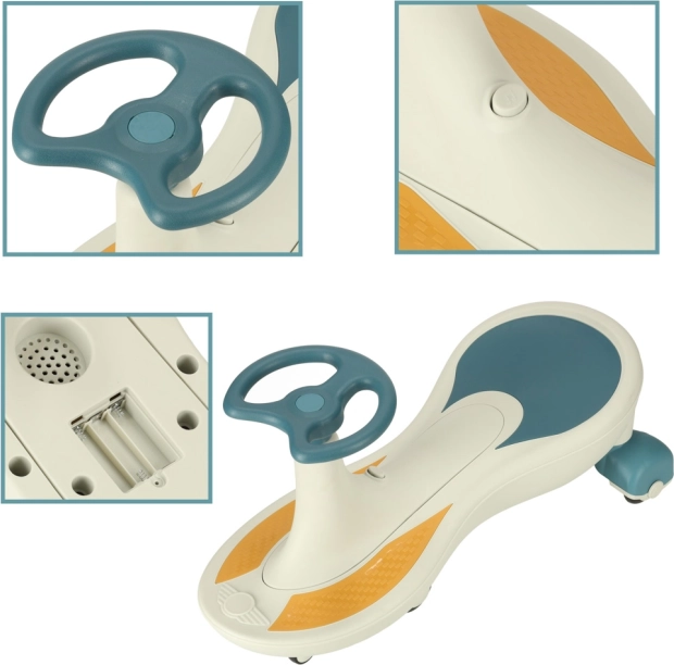 Gravitations-Rutschfahrzeug mit LED-Rädern und Musik, 76 cm, beige-weiß, Traglast 100 kg