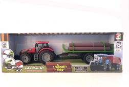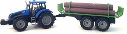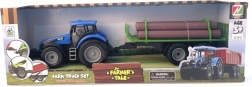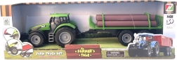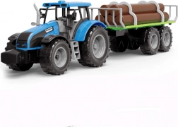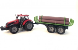 Der Anhänger voll beladen mit Holz und die verschiedenen Farben des Traktors sorgen für Spaß beim Spielen in landwirtschaftlichen und baulichen Szenarien.