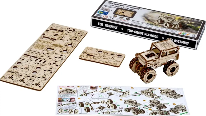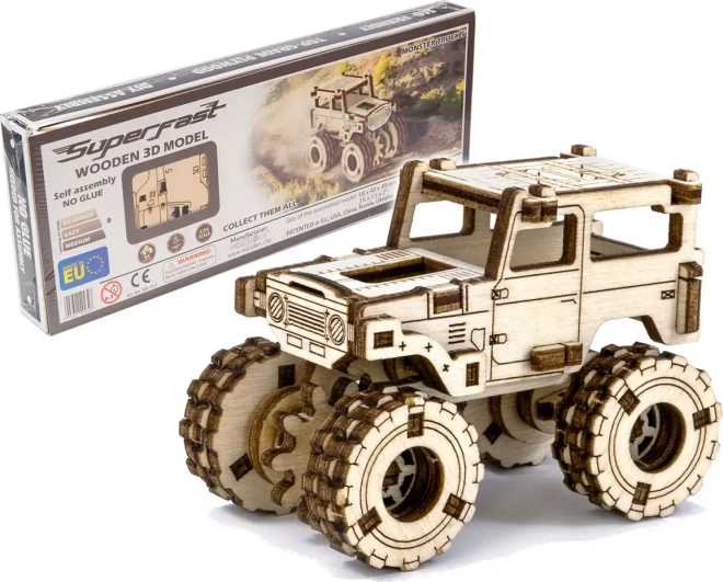 Entdecken Sie die Freude am Bauen mit diesem Holz-3D-Puzzle, mit dem Sie Ihr eigenes Monstertruck-Modell inspiriert vom ikonischen SUV TOYOTA FJ40 erstellen. Das Set kommt ohne Klebstoff und Schrauben aus – die Montage ist sauber und schnell. Dank des einfachen Zusammenbaus, der 64 Teile, der kurzen Montagezeit (ca. 30 Minuten) und der umweltfreundlichen, plastikfreien Ausführung ist es eine großartige Wahl für Einsteiger und Fortgeschrittene. Das Modell aus Birken-Sperrholz können Sie zudem nach Ihren Vorstellungen bemalen.