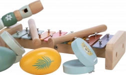 Jedes Instrument besteht aus einer Kombination aus Holz und Metall, was für Robustheit und Langlebigkeit sorgt. Die farbigen Akzente der einzelnen Teile verleihen jedem Spiel die richtige musikalische Atmosphäre.