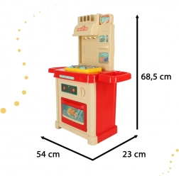 Kinderküche hat viele interessante Funktionen, die stundenlangen Spaß garantieren. Der Lichteffekt des Herdes erhöht den Realismus und fasziniert jedes Kind. Diese Küche wird die Dekoration jedes Kinderzimmers und bietet unzählige Möglichkeiten für kreatives Spielen.